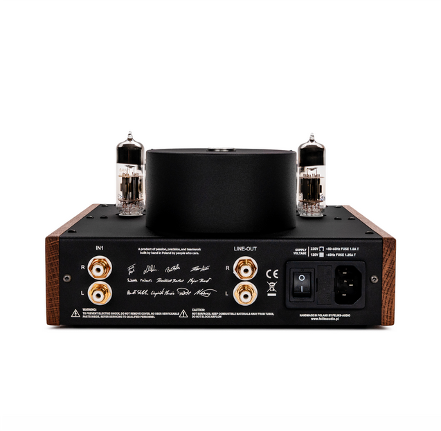 Sercem wzmacniacza jest precyzyjnie dobrany zestaw historycznych, nieużywanych lamp NOS (New Old Stock). Fabrycznie zamontowano tu modele 6N1P (sterujące) oraz 6N6P (mocy). Dla osób, które lubią eksperymentować i dopasowywać brzmienie do własnych preferencji, wzmacniacz oferuje szeroką kompatybilność. Lampy można łatwo zastąpić popularnymi zamiennikami: